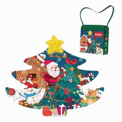 Christmas Jigsaw Puzzle 115 Pcs Santa Claus Floor Puzzle Toys Learning Educational Toddler Toy (Christmas Box)
