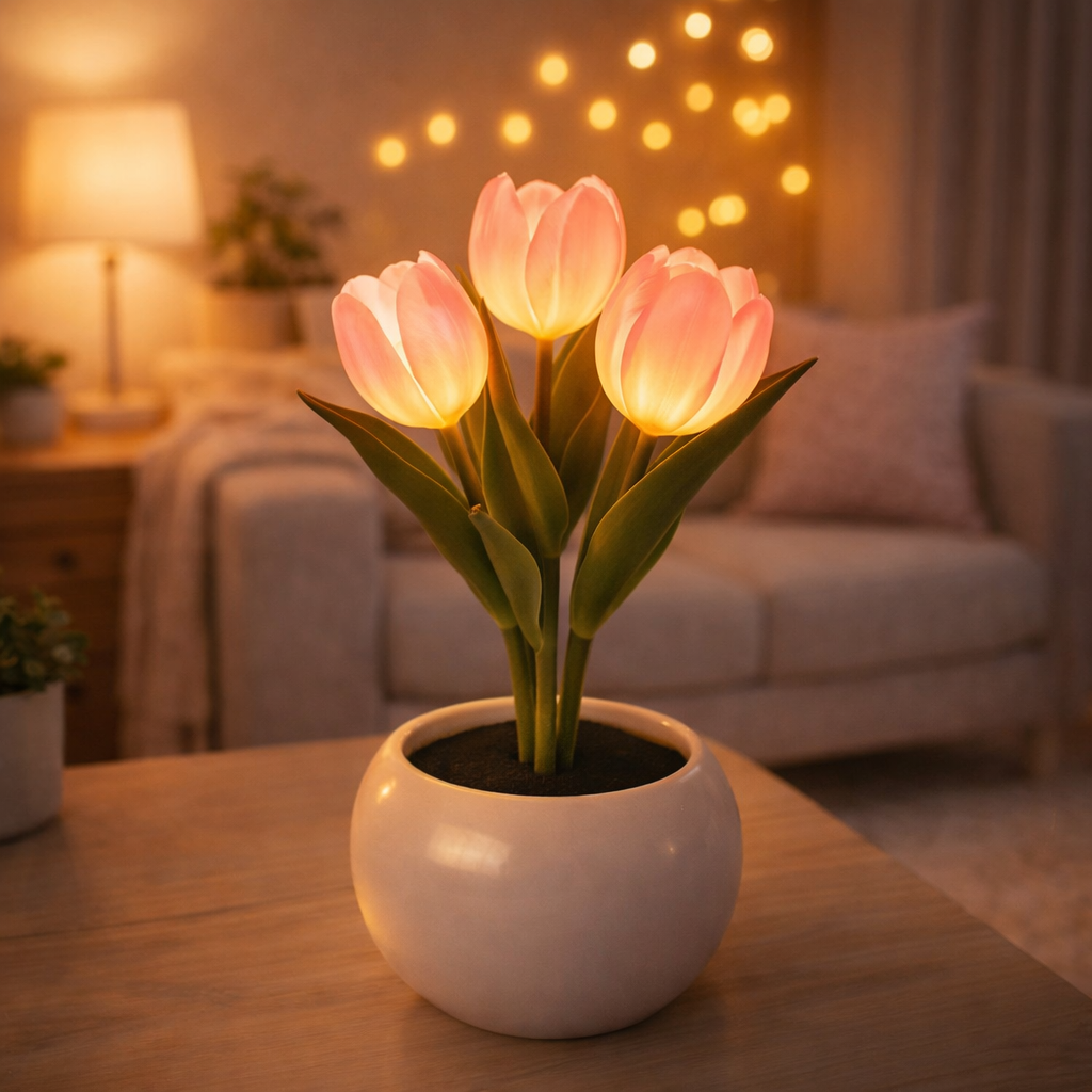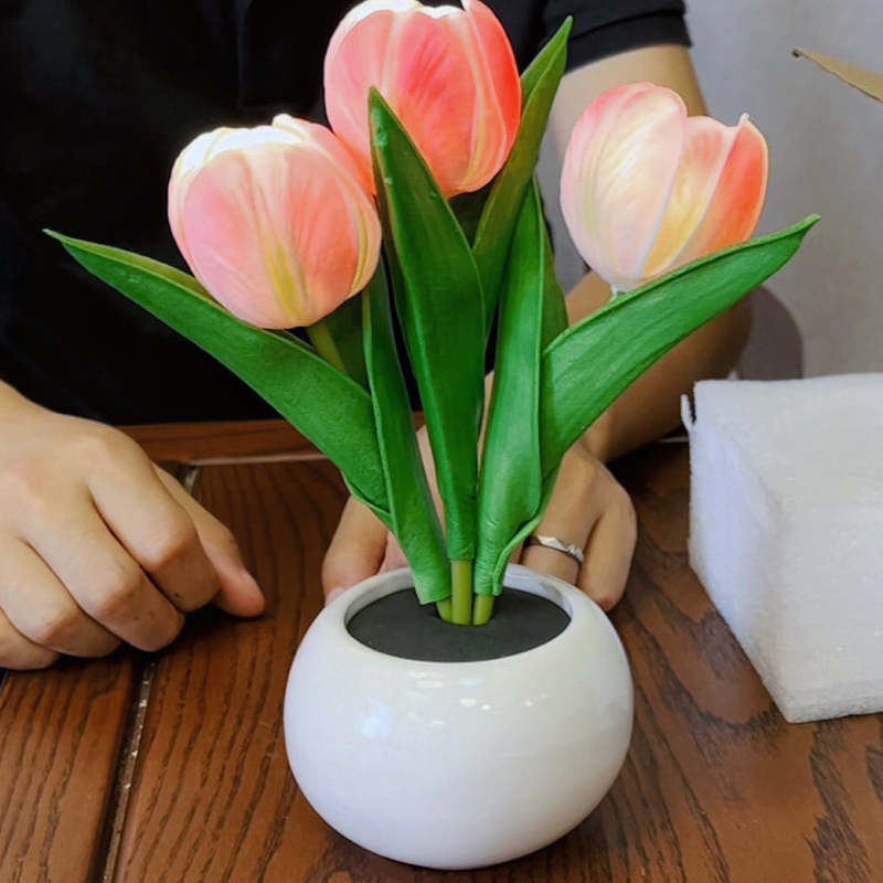 Contemporary Creative Tulip Flower Ceramic PU USB LED Table Lamp For Bedroom