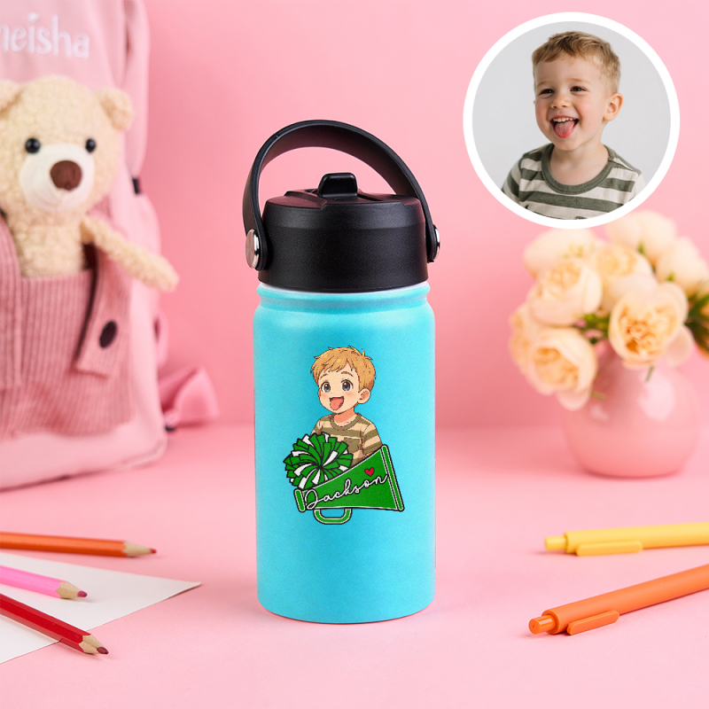 Custom Cartoon Sports Kids Water Bottle Personalized Name & Photo Colorful & Fun Gift Multiple Colors Available