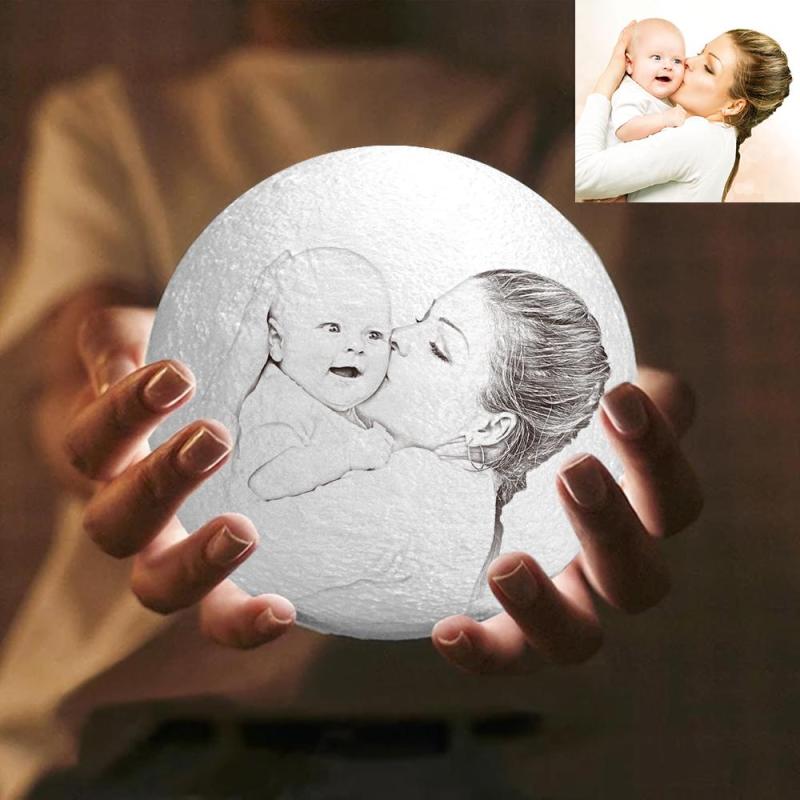Personalised Moon Lamp | Mom's Gift| Touch to Convert 2 Colors| Engraved 3D Photo