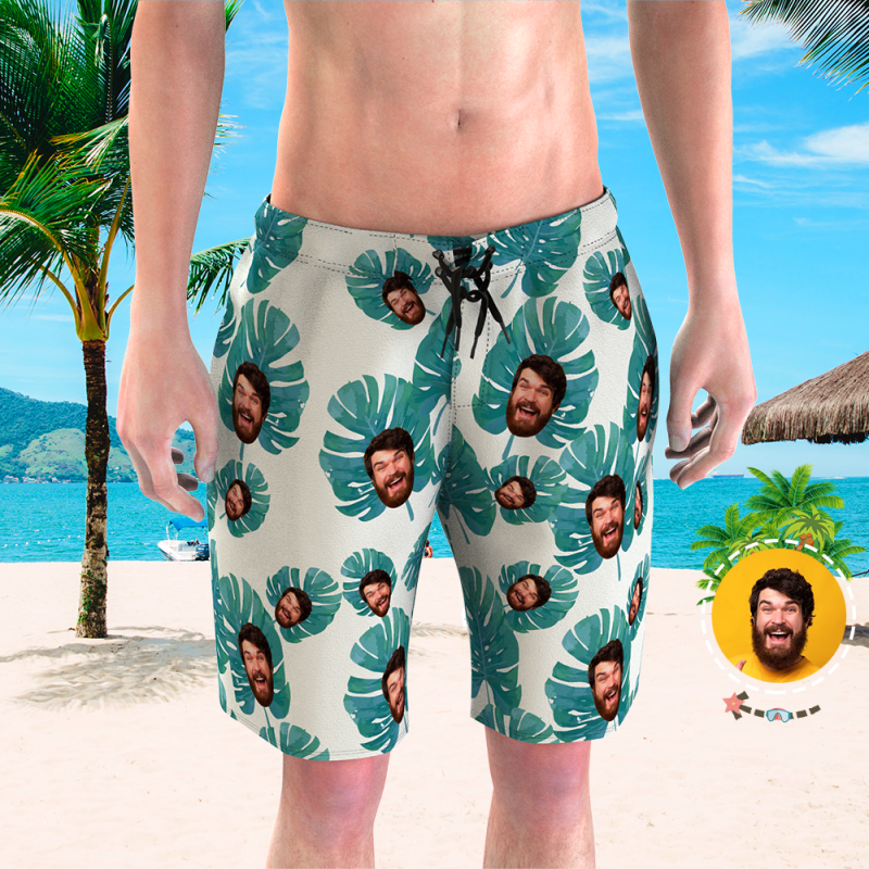 Custom Swim Shorts Face on Swim Trunks Gifts for Him - Leaves