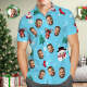 Custom Face Hawaiian Shirt Personalised Photo Blue Hawaiian Shirts Snowman and Elk Christmas Gift for Him