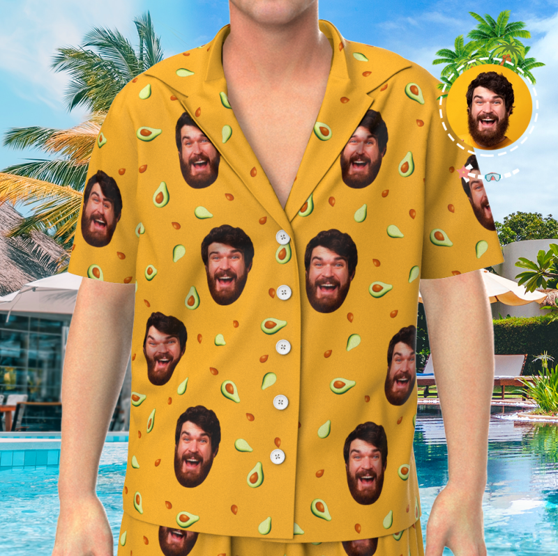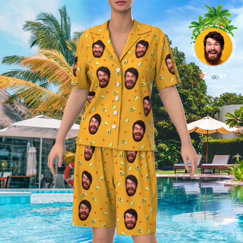 Mother's Day Gifts Pyjamas Custom Face On Pajamas, Button-Down Nightwear, Short Sleeve Sleepwear - Avocado