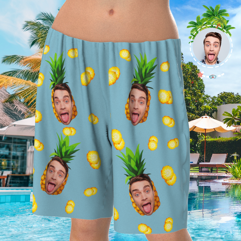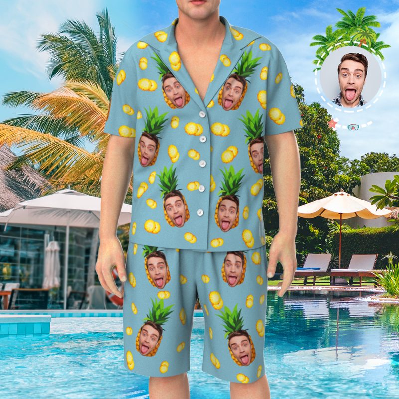 Mother's Day Gifts Pyjamas Custom Face On Pajamas, Button-Down Nightwear, Short Sleeve Sleepwear - Pineapple