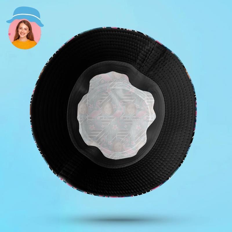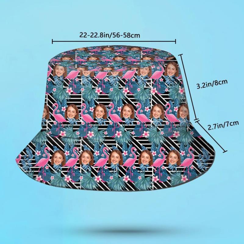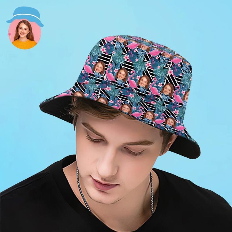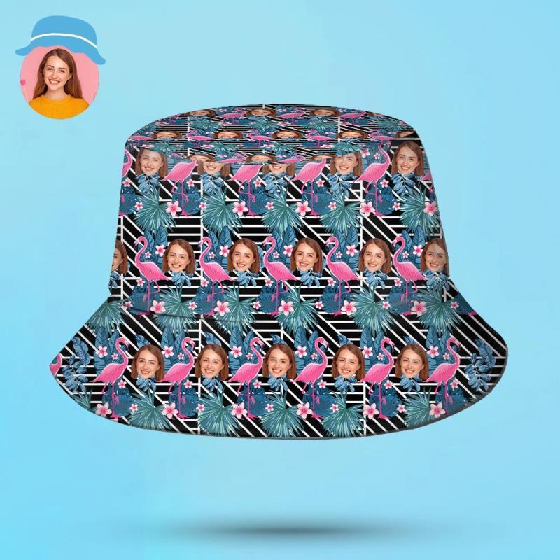 Custom Face Photo Bucket Hat Personalised Wide Brim Outdoor Summer Cap Unisex Hiking Beach Sports Hats Gifts for Lover - Flamingo