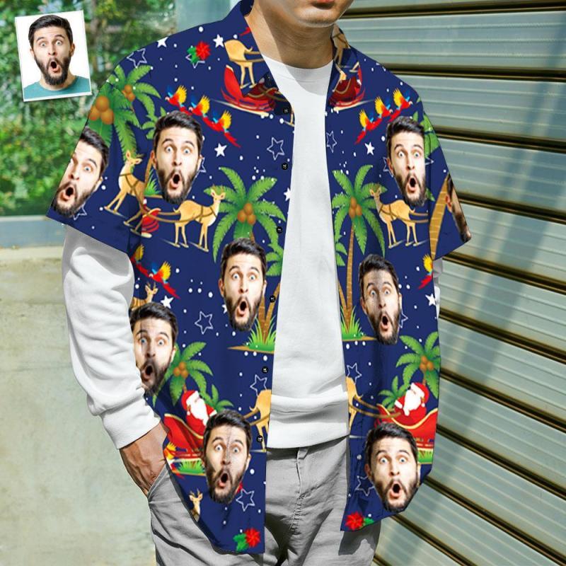Custom Hawaiian Shirt with Face Personalised Photo Men's Hawaiian Shirt - Santa and Elk