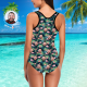 Custom Face Swimwear Women's Photo Slip One Piece Swimsuit Women's Gifts - Leaves & Flamingo