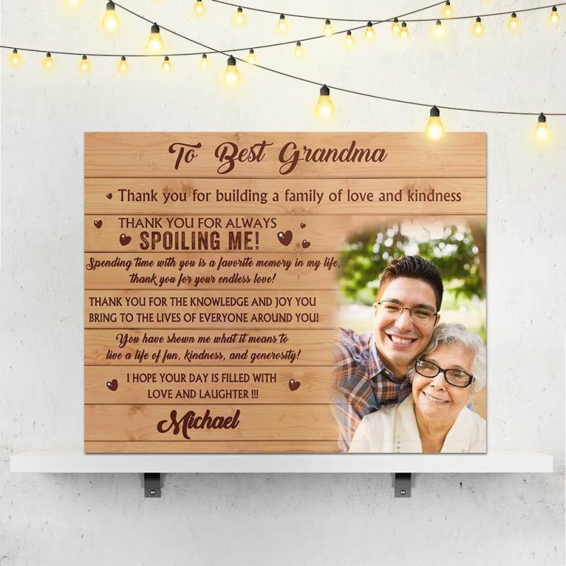 Custom Family Photo Wall Decor Painting Canvas With Text - To Best Grandma