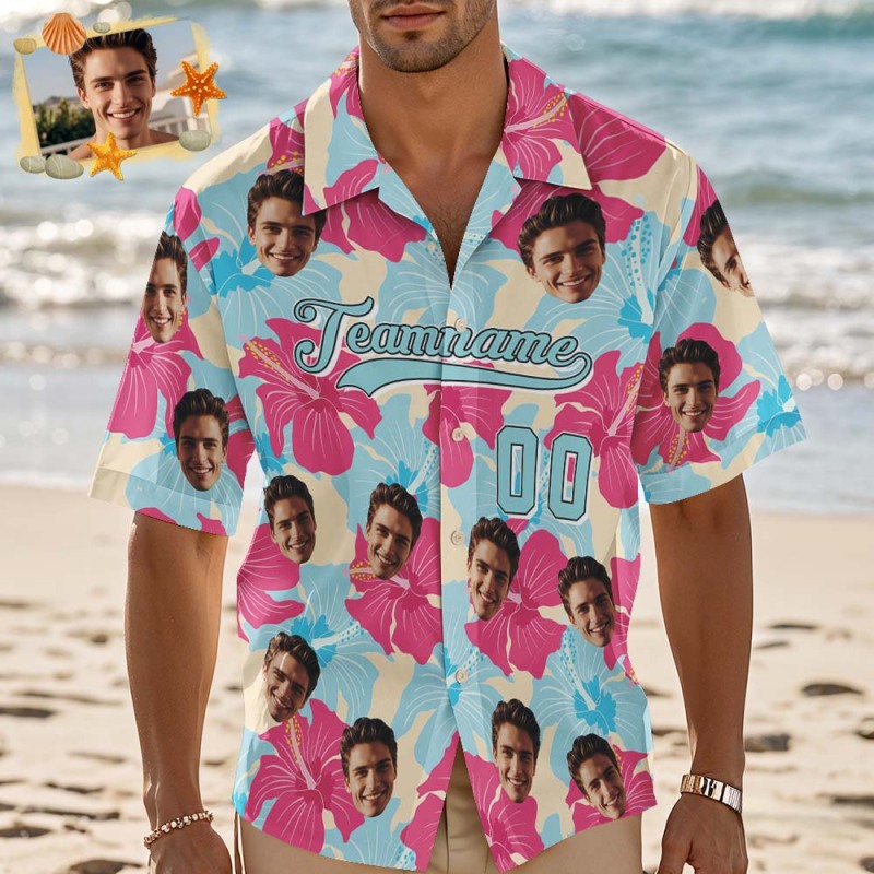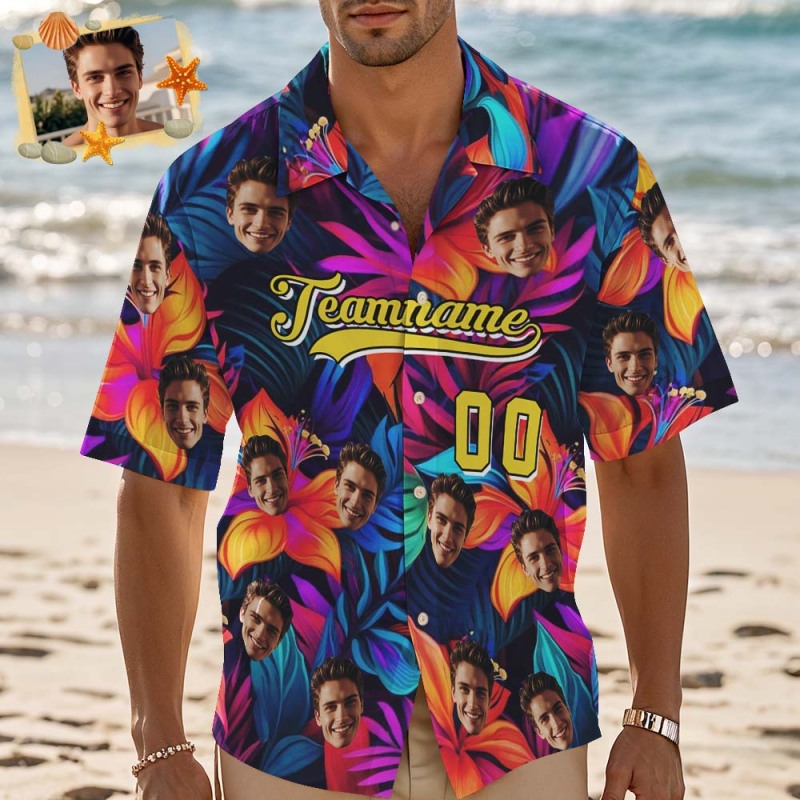 Custom Hawaiian Shirt Personalized Team Name & Number Custom Face Tropical Summer Vacation Shirt for Men, Birthday, Beach, Party Gift