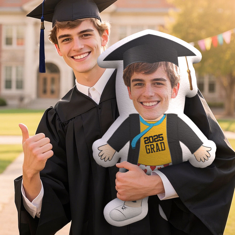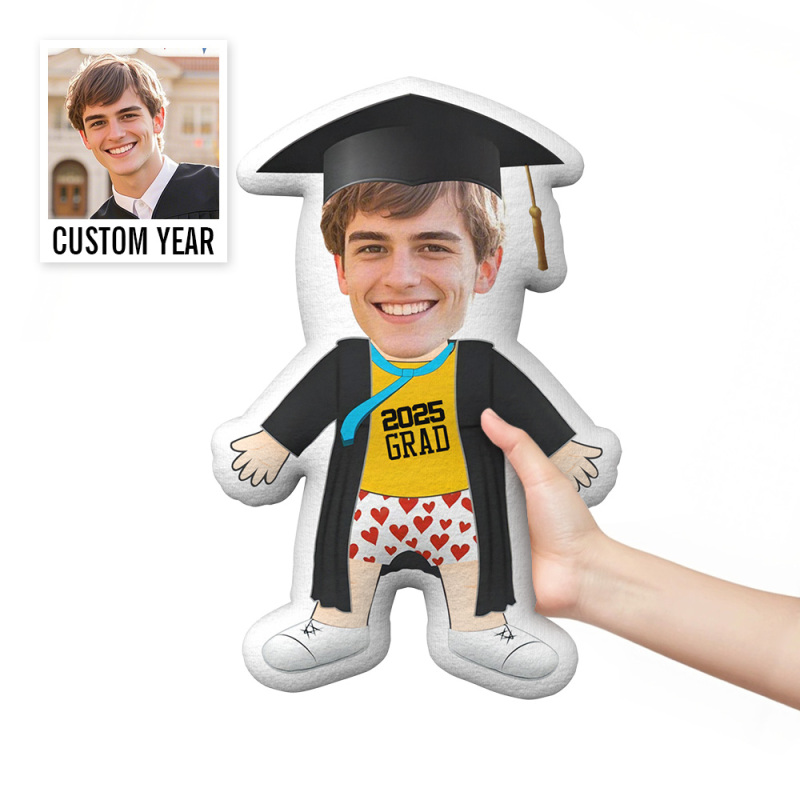 Custom Minime Throw Pillow Graduation Ready to Vacation Red Heart Brief Grad Pillow Personalized Photo Minime Pillow for Graduated Students