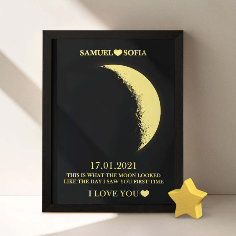 Custom Moon Phase and Names Foil Print Wooden Frame with Your Text