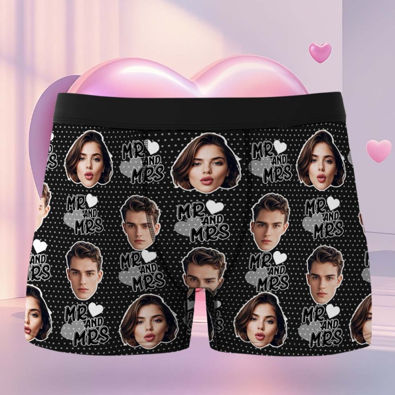 Custom Mr & Mrs Boxers Face Boxers Popular Boxer Shorts Men's Underwear Valentine's Day Gifts