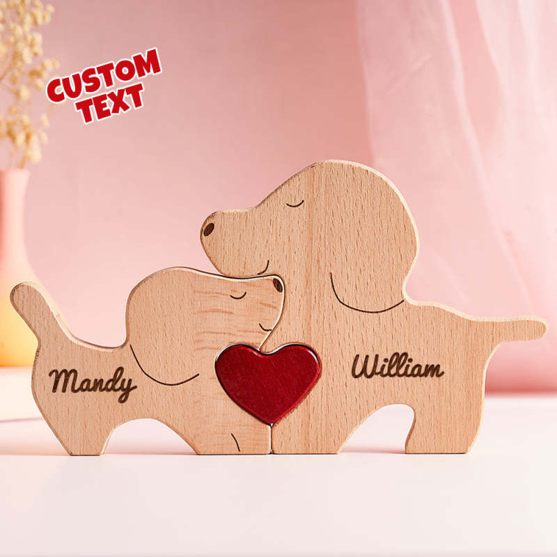 Custom Name Wooden Dog Couple Heart Blocks Valentine's Day Gifts