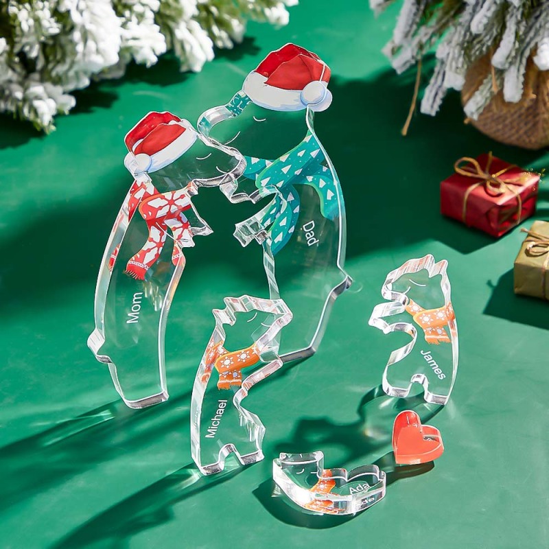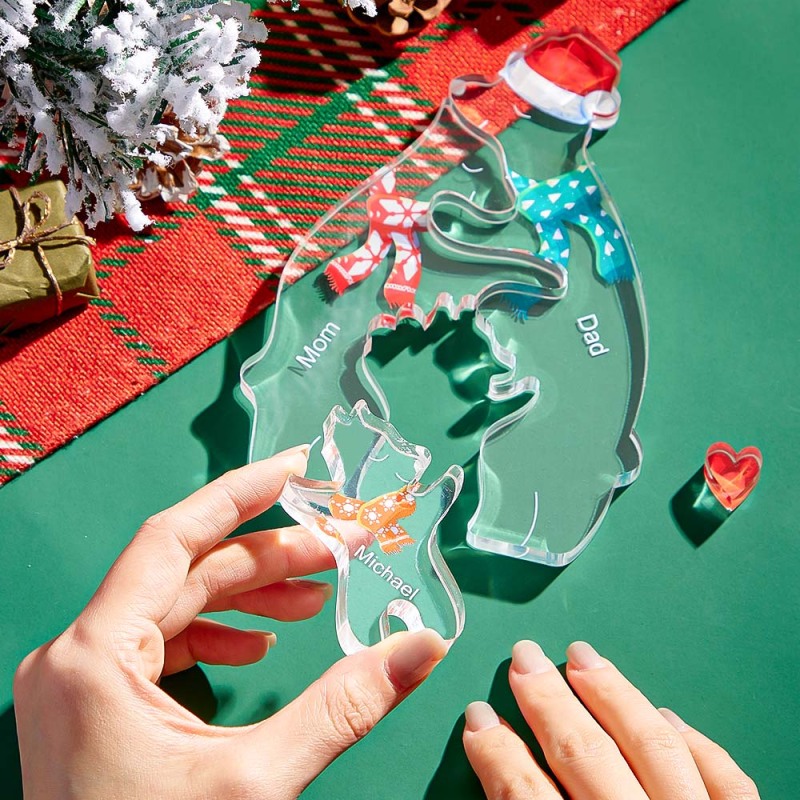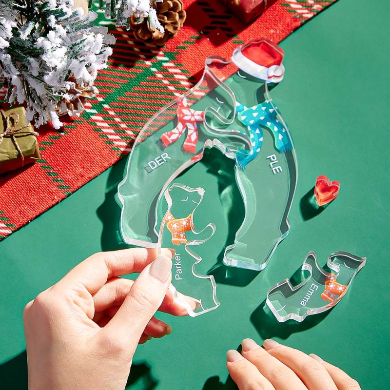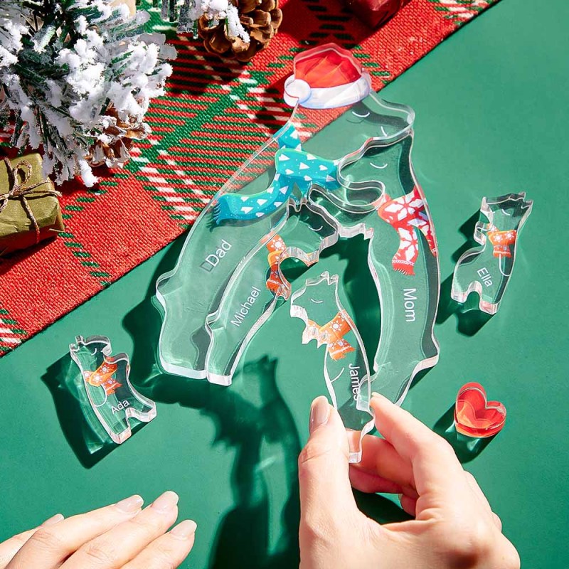 Custom Names Christmas Hugging Bear Family Acrylic Bear Family Puzzle Home Decor Christmas Gifts