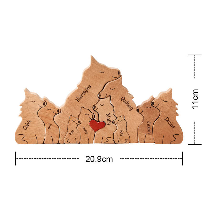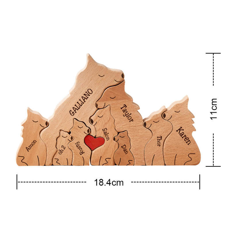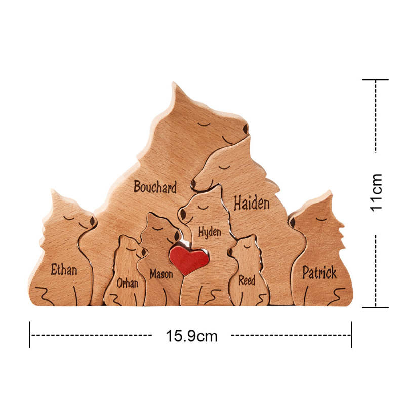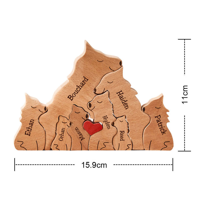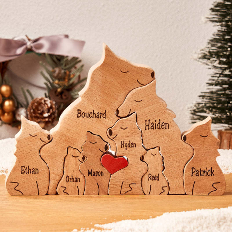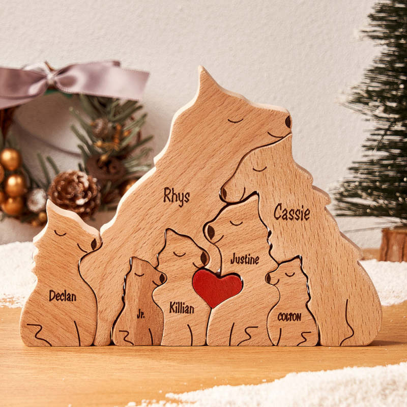 Custom Names Wooden Wolf Family Puzzle Home Decor Christmas Gifts