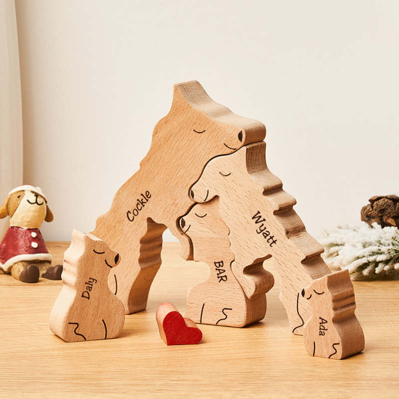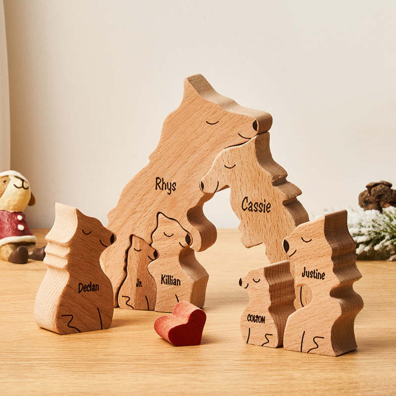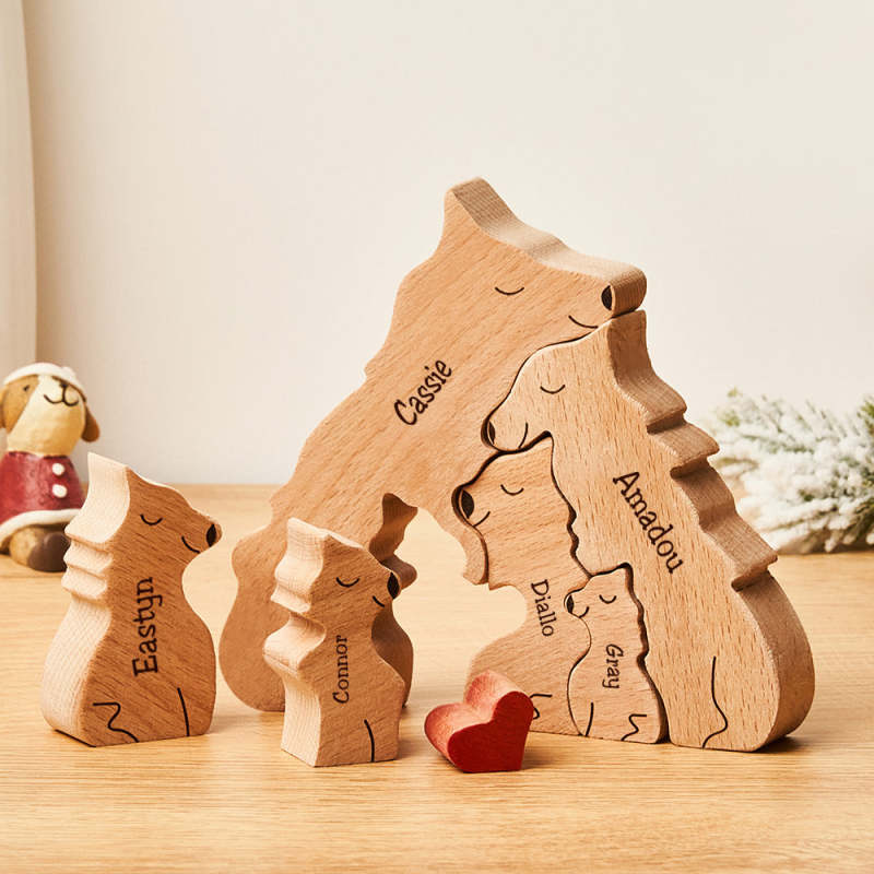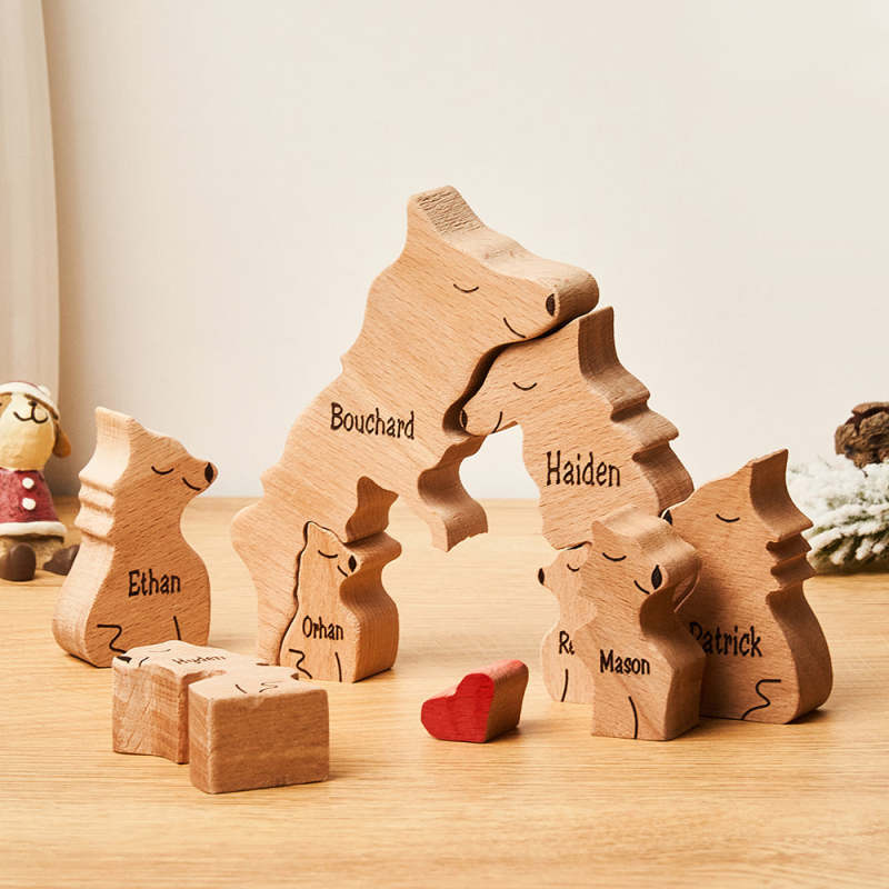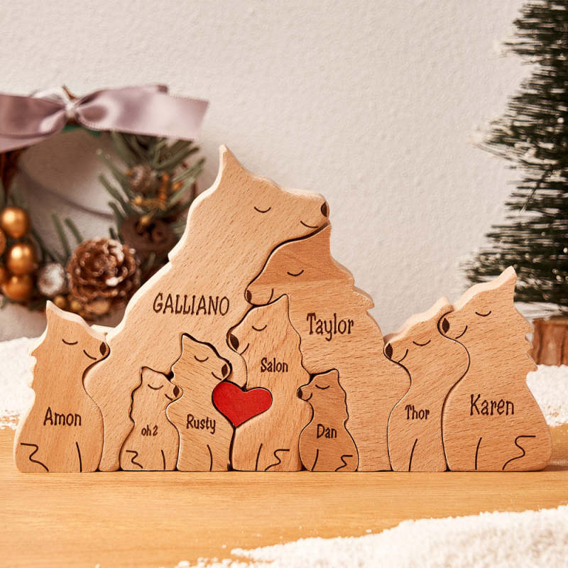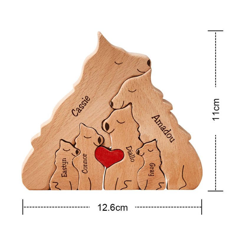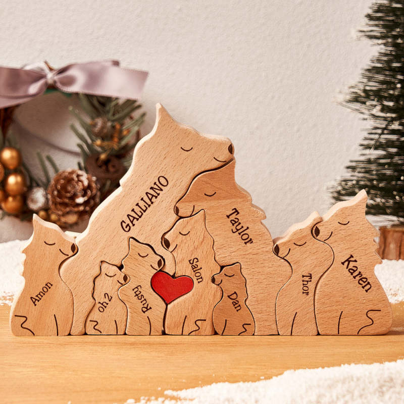 Custom Names Wooden Wolf Family Puzzle Home Decor Christmas Gifts