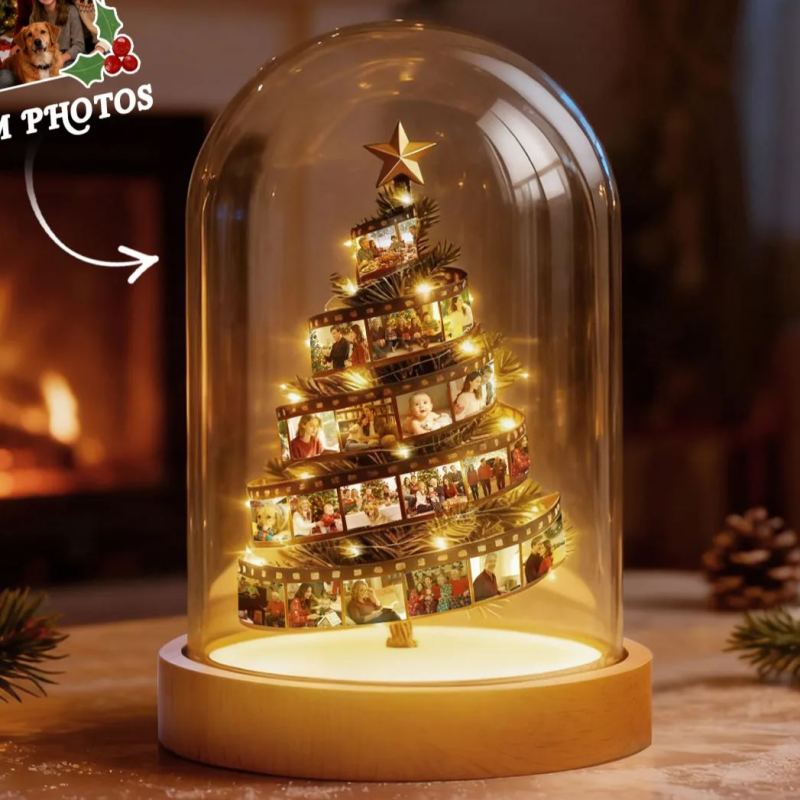 Custom Photo Film Christmas Tree Night Light Personalized Family Keepsake with Engraved Base Christmas Gift