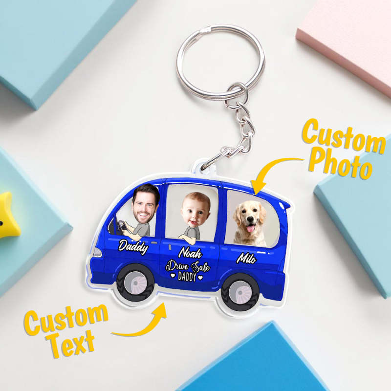 Gifts for Father Drive Safe Daddy Keyring Personalised Face Acrylic Keychain Dad Birthday Gift