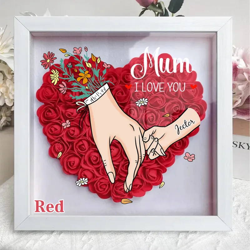 Family Love Blooms Forever – Personalised Mum & Grandma Flower Shadow Box with Names