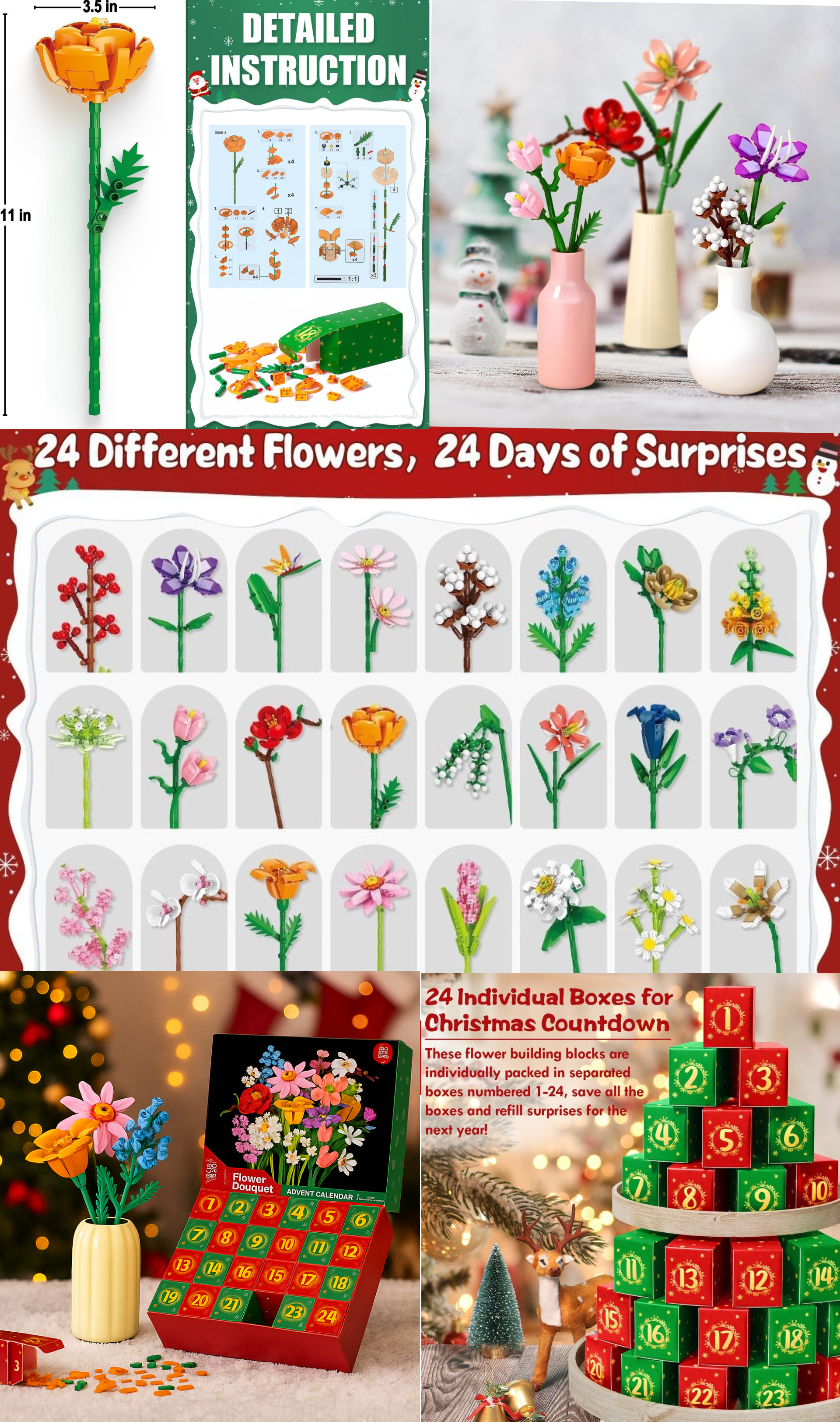 Flower Bouquet Advent Calendar Building Blocks – Christmas Countdown Blind Box
