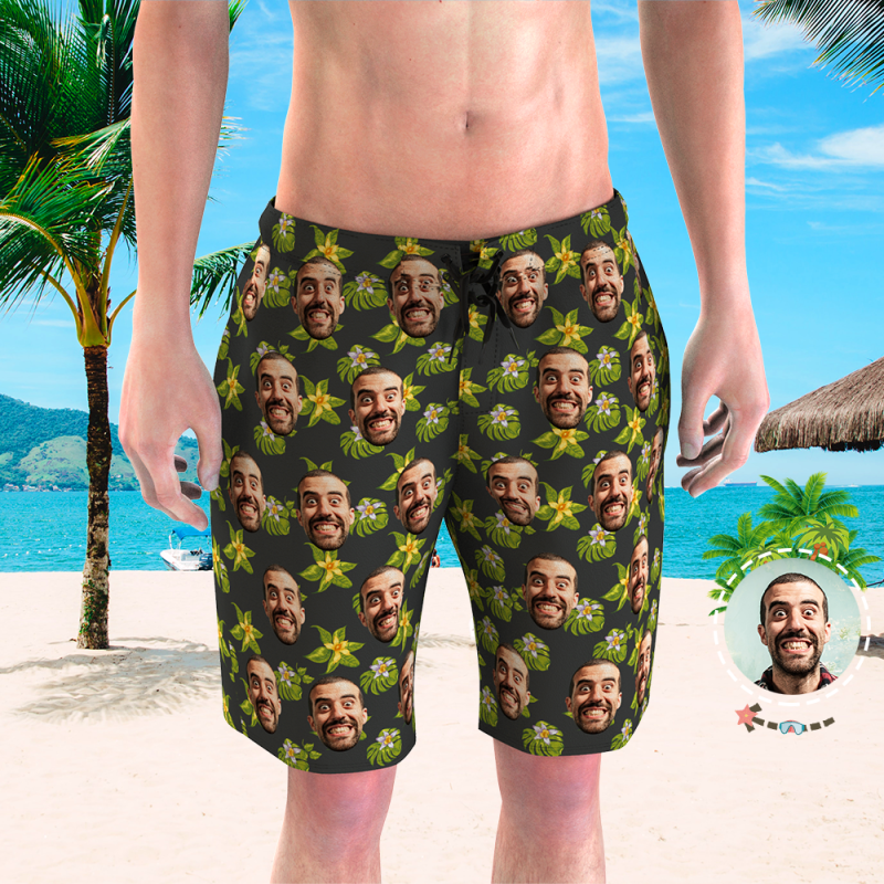 Personalised Swimming Shorts Photo on Swim Trunks Gifts - Green And White Flower