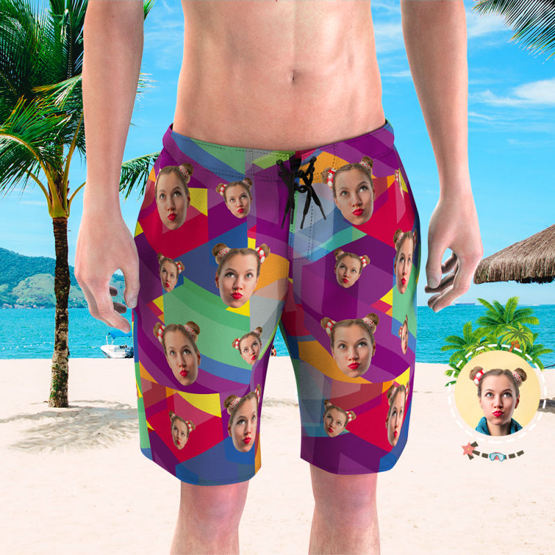 Custom Swim Shorts Face on Swim Trunks Gifts for Him - Multicolor