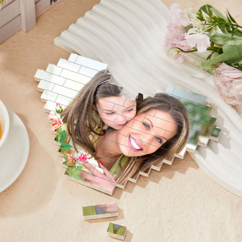 Gifts for Her Custom Building Brick Personalised Photo Block Heart Shaped