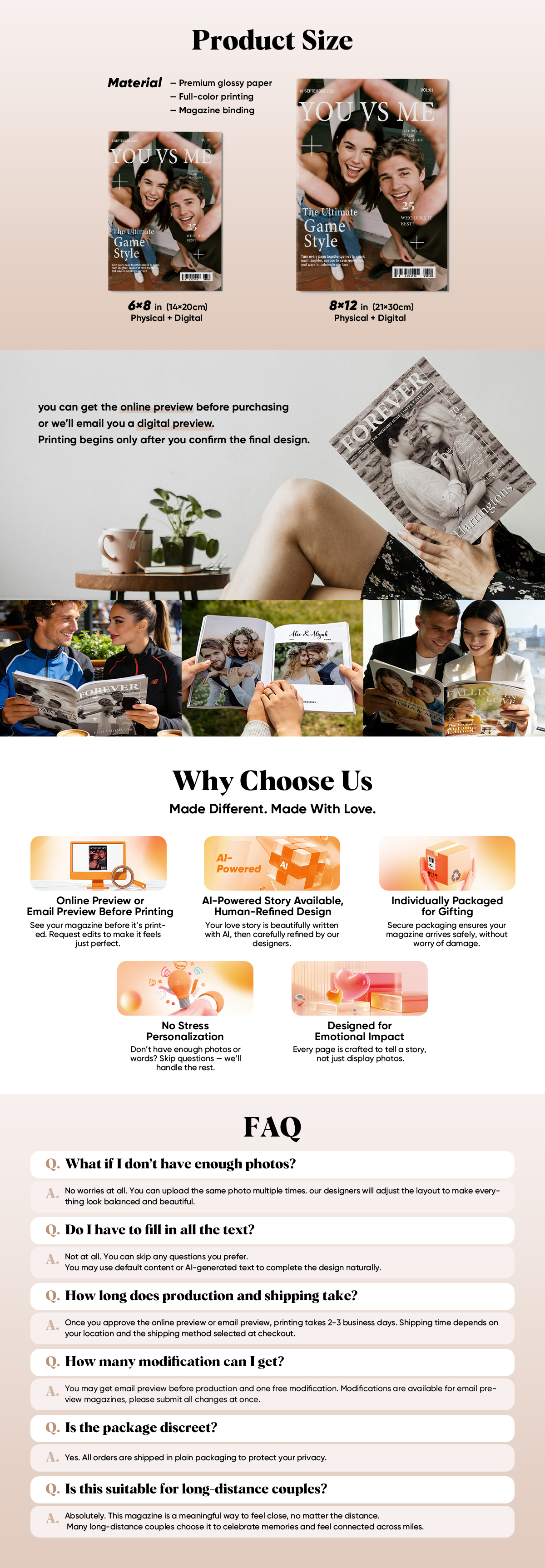 - 3. For personalized products, if you need to cancel or replace the product or replace the personalized content, you will have to pay 30% of the product price as the customization fee. (Special note: Even if you contact us immediately after placing the order to cancel/modify the order, we will charge the corresponding production fee because the customized product will be produced immediately once the order is placed in order to ensure a timely production and delivery. Thanks for you understanding.)