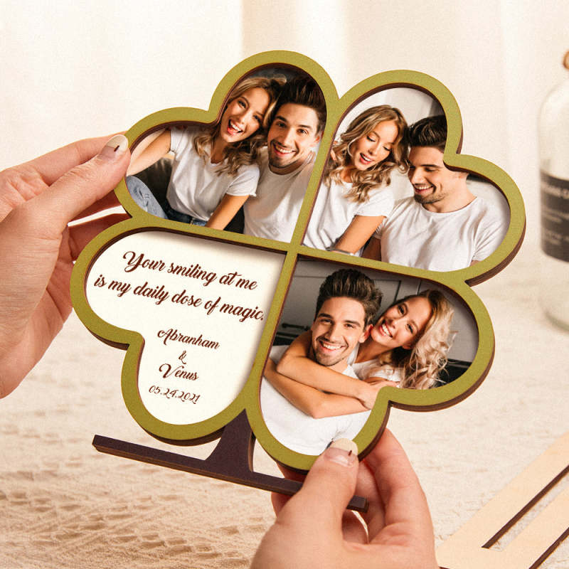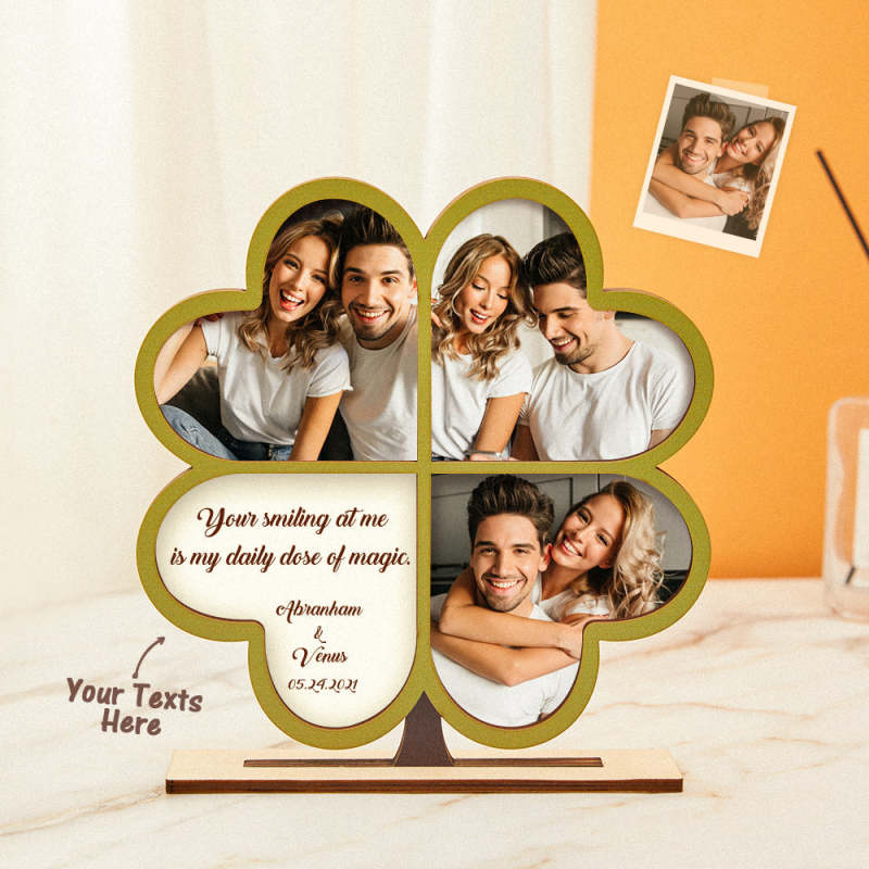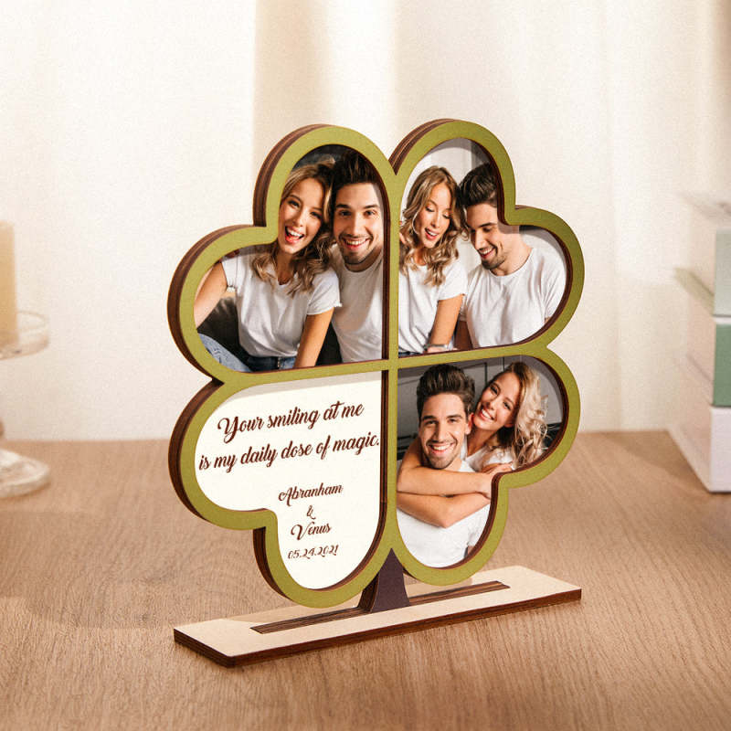 Personalised Four-leaf Clover Photo Decor Custom Engraved Simple Wooden Plaque For Living Room