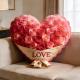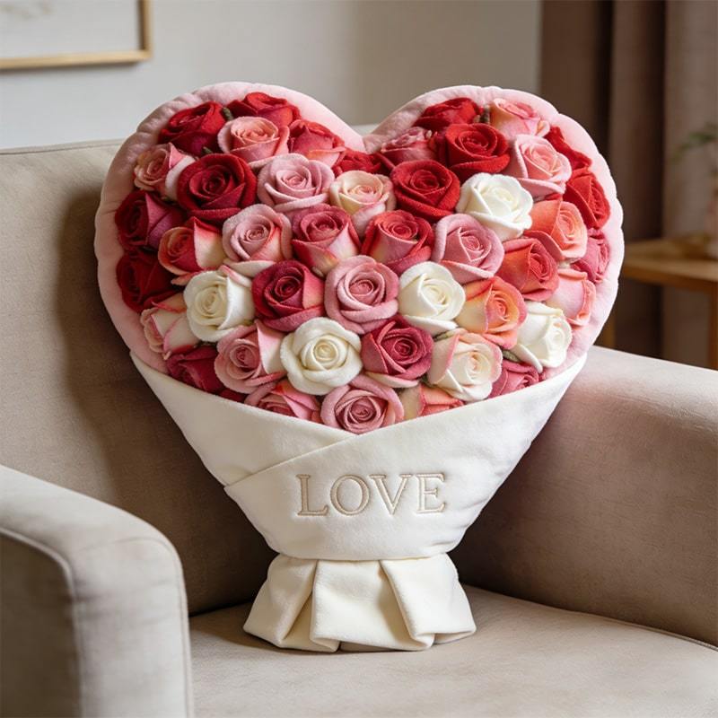 Personalized Heart-Shaped Flower Bouquet Themed Throw Pillow