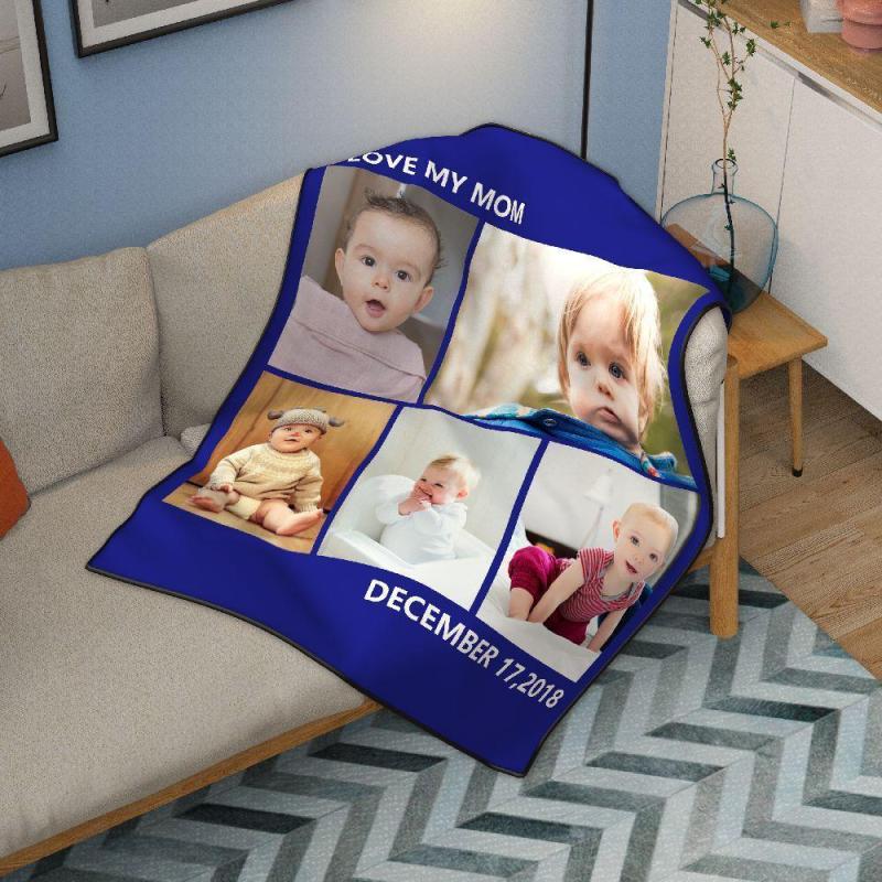 Personalized Photo Fleece Blanket Custom Photo Blanket Kids Photo Collage Blanket with 5 Photos