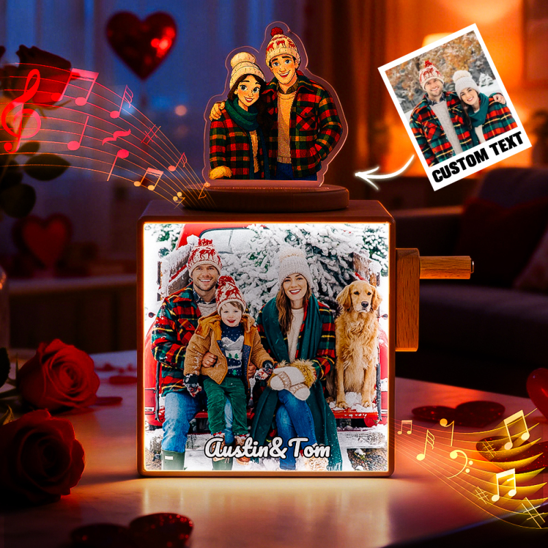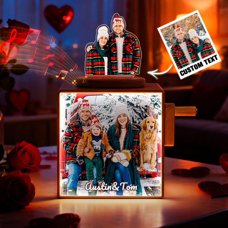 Personalized Photo Music Light Box with Hand-Crank Player – Custom Couple Memory Gift