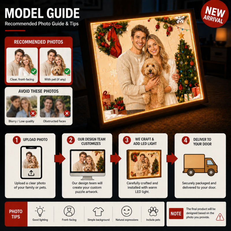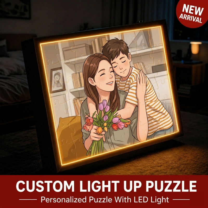 Personalized Photo Puzzle 48-63 Piece LED Acrylic Light Up Jigsaw with Wooden Frame Mother's Day Gift for Mom