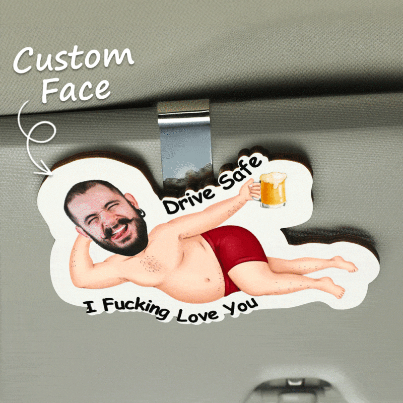 Personalized Photo Wooden Car Visor Clip Drive Safe I F*Cking Love You - Funny Valentines Day Gifts For Husband, Wife