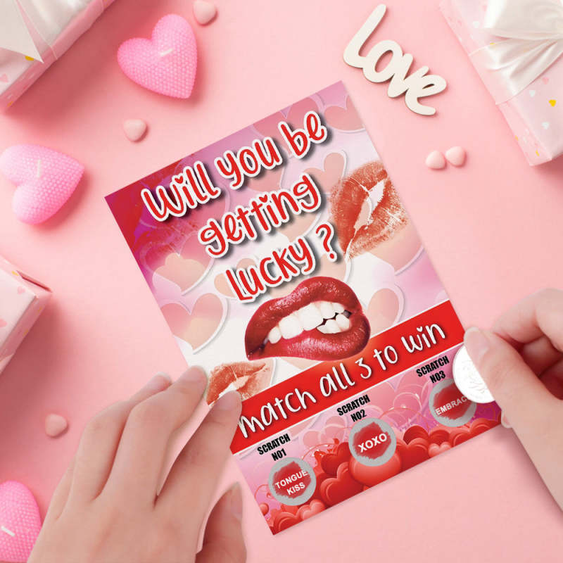 Red Lips Scratch Card Surprise Funny Scratch off Card Match 3 to Win Card