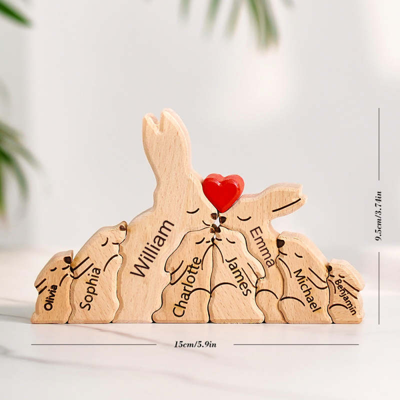 Wooden Rabbit Family Puzzle Custom Names House Warming Gifts Home Decor